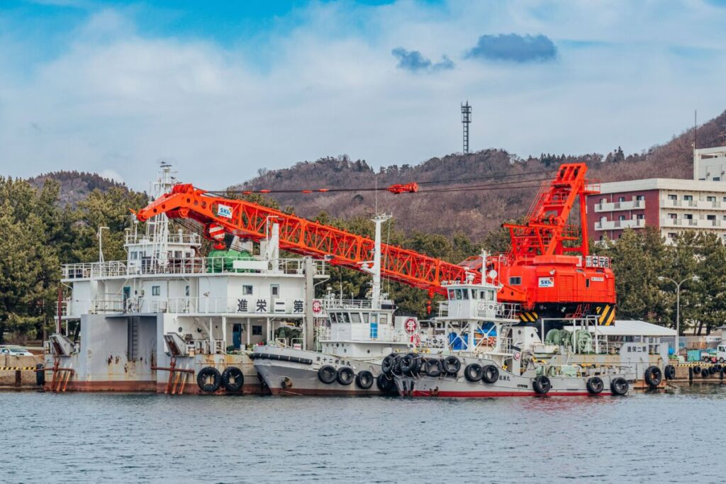 具体的には、自社で3隻の作業用船舶を保有し、海沿いの工事や港の内外で様々な作業を行っています。最近では、新潟市の西区から寺泊のシーサイドラインにある獅子ヶ鼻での港湾工事(浚渫)など、印象的なプロジェクトに取り組んでいます。