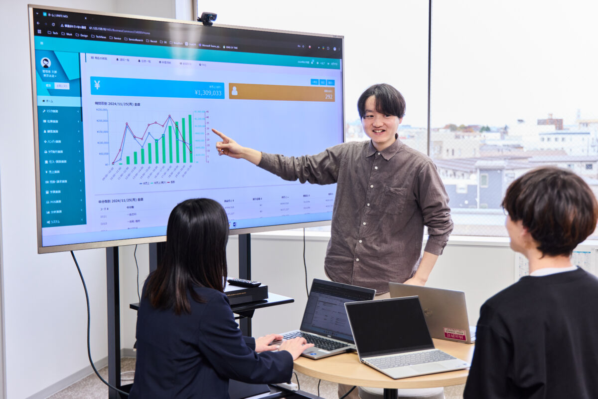 毎年少しずつ変わる部分もありますが、例年はおおむね次のような流れで進めています。入社後3日間は、社会人マナー研修を行い、その後2か月間は外部のプログラミング研修を受けていただきます。未経験者でもこのプログラムで、しっかり基礎知識やスキルを身につけられます。6月ごろになったら、会社に戻っていただき、2か月間ごとにソリューション事業と決済サービス事業の2つを体験してもらう形となっています。その後は最終的な配属先に配属となり、教育担当と一緒にOJT研修を秋ごろからスタートします。毎年未経験者は一定数いるので、会社として未経験の方でも安心して活躍できるよう、育成・研修にはとても力を入れています。